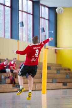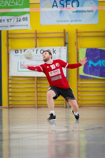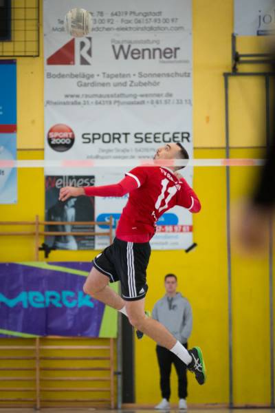 Nach einer 15-minütigen Pause ging es dann gegen den Gastgeber aus Pfungstadt. Die junge zweite Mannschaft, des Erstliga-Primus, spielt die erste Saison im Männerbereich und sammelt wertvolle erste Erfahrungen. Dabei kämpfen Sie um die ersten Satzgewinne in der laufenden Saison. Zu Beginn konnte sich der TVR allerdings schnell mit einem 5:2 absetzen. Mit ruhigen Annahmen und präzisen Zuspielen von Simeon Wittich und Janni Tille konnte Jonas Knieß ein ums andere Mal mit leichten „Boden-Wand-Bällen“ punkten. Eigenfehler auf Pfungstädter Seite brachten hierzu dann folglich den Satzgewinn mit 11:4 für den TV Rendel. Zum zweiten Satz tauschten Hauptangreifer Jonas Knieß und Zweitschläger Simeon Wittich die Position. Die Umstellung brachte zu Beginn noch einige Unruhe in die Mannschaft und so lief man am Start einem 0:2 Punkterückstand hinterher. Zur Satzmitte konnte der Rückstand in einen 7:4 Vorsprung umgewandelt werden. Simeon Wittich und auch das Zuspiel um Janni Tille kam nun besser in Schwung und der TVR gewann den Satz mit 11:6. Im dritten Satz spielten die Karbener wieder routinierter auf und zogen direkt zum 6:0 davon. Einige Eigenfehler auf Rendler Seite brachten Pfungstadt 2 zwar noch einmal ein wenig heran, im Verlaufe des Spiels konnten die Rendeler sich aber weiter absetzen und gewannen auch den letzten Satz mit 11:4 Punkten.
