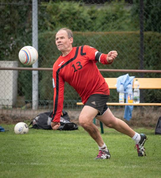 Dementsprechend gespannt und als Außenseiter gebrandmarkt startete der TV Rendel nach einem starken Regenschauer auf dem Faustballplatz in der Gruppe B gegen den TSV Wiemersdorf in das Turnier. Trotz der anfänglichen Aufregung begann die Mannschaft um Kapitän Peter Lotze gut, sodass der umkämpfte erste Satz an die Kärber M35 ging. In der Folge verloren die Rendler aber ein wenig die Kontrolle über das Spielgeschehen. Die beiden Folgesätze und somit die Partie gingen mit 1:2 verloren. „Eine ärgerliche Niederlage“, wie Hauptangreifer Daniel Horn berichtete. „In dieser Begegnung wäre durchaus mehr drin gewesen.“ Anders als in der Partie gegen den Titelverteidiger VFK Berlin. Der den Wetterauern um Zuspieler Michael Jäger keine Chance ließ und die Begegnung deutlich mit 2:0 für sich entscheiden konnte. Ähnlich, wenn auch nicht ganz so deutlich, liefen auch die beiden Folgespiele gegen den TSV Hagen und den späteren Halbfinalisten TV Waldrennach. Gegen die beiden Favoriten zogen die Faustballer vom TV Rendel trotz aufopferungsvollem Kampf ebenfalls mit 0:2 den Kürzeren und belegten somit in der Gruppe B den fünften Platz. Trotz der Niederlagen blieb die Stimmung im Team, ob der gezeigten Leistungen positiv und die Mannschaft verbrachte gemeinsam einen gemütlichen Abend.