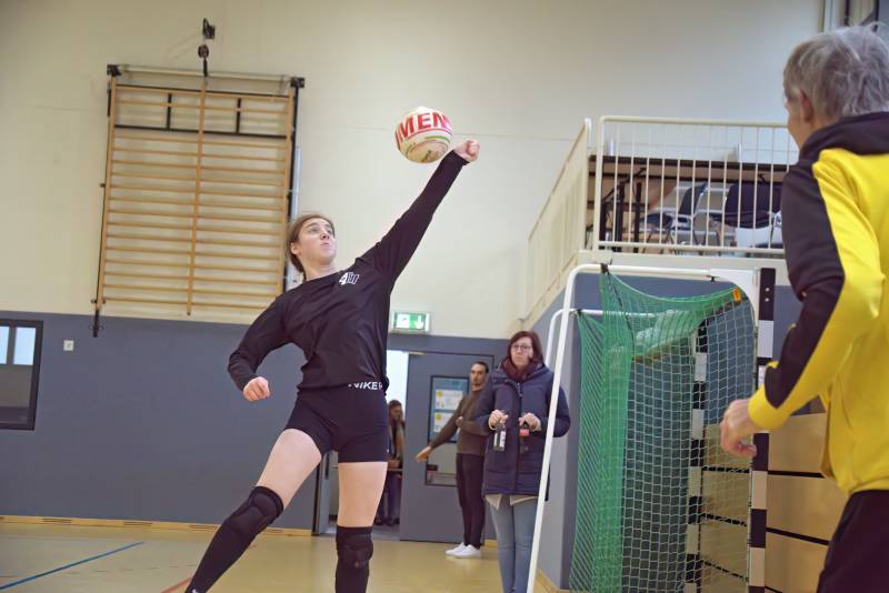 Gleich der erste Satz entwickelte sich zu einem spannenden Duell. Beide Mannschaften konnten durch starke Angriffe nach langen Ballwechseln punkten. Es wurde die volle Distanz genutzt doch am Ende zeigten die jungen Rendelerinnen mehr Nervenstärke und gewannen mit 15:14 Punkten. Im zweiten Satz konnte sich der TVR dank sehenswerter Spielzüge absetzen. Das Zusammenspiel zwischen Abwehr und Zuspiel setzte den Angriff zunehmend in Szene und so ging der Satz mit 11:7 an den Gastgeber. Im letzten Satz dieser krimigleichen Begegnung bauten die Mannschaften nochmal ähnlich wie zu Beginn den Spannungsbogen auf und auch dieses Mal kam es zu der höchstmöglichen Anzahl an Ballwechseln. Erneut mit dem besseren Ende für die Wetterauer. Mit 15:14 Punkten hatte der TVR denkbar knapp die Nase vorne und sicherte sich somit die sehenswerte partie in 3:0 Sätzen.