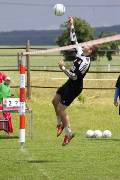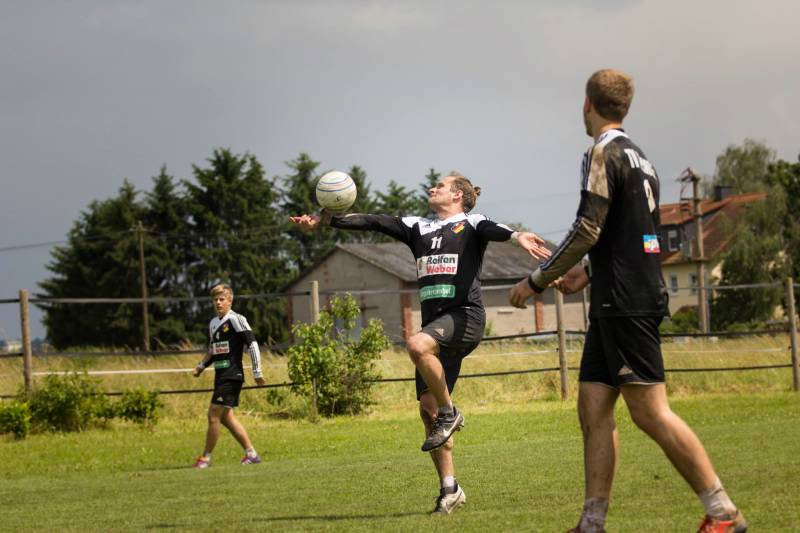 Auch in der zweiten Begegnung hatten beide Mannschaften mit dem schlammigen Untergrund zu kämpfen. Allerdings ließen die Kärber gegen den KSV Reichelsheim, bei denen der Hauptangreifer kurz vor Spielbeginn aufgrund einer Verletzung ausfiel, nichts mehr anbrennen. Der frisch in die Partie gekommene Kapitän Peter Lotze führte die Mannschaft zu einem ungefährdeten 11:5 Satzsieg. In der Folge experimentierte Coach Michael Jäger ein wenig und stellte das Team in unterschiedlichen Formationen und Spielsystemen auf, dies brachte dem Spiel der M1 keinen Abbruch bei und die beiden letzten Sätze wurden mit 11:5 und 11:6 zum 3:0 Erfolg gewonnen.