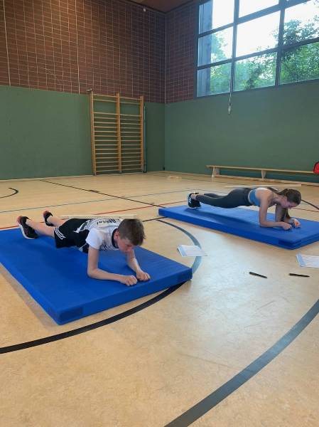 Nach dem doch recht monotonen und anstrengende Stepptest, wurde spätestens bei den Liegestützen, Plankes und Jump der Kampfgeist bei allen geweckt.