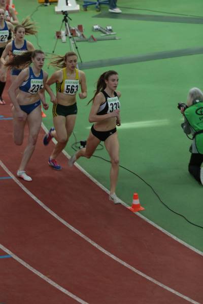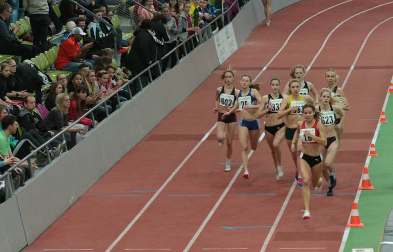 So ging die 15-jährige das Rennen beherzt an, setzte sich früh an die Spitze und drückte auf das Gaspedal – mit Kurs auf ihre Freiluft-Bestzeit von 2:13,61 min., ein für die engeren Hallenrunden ambitioniertes Ansinnen. Doch Lara hatte die Form und die Tempohärte und brachte den Tempolauf mit Bravour zu Ende – mit neuer persönlicher Bestzeit von 2:13,15 min., knapp geschlagen nur von der drei Jahre älteren Johanna Bethan (TLV Germania Überruhr) und noch vor der zwei Jahre älteren Barbara Plötz (TV Bad Kötzting), die im vergangenen Jahr bereits unter der „Schallgrenze“ von 2:10 min. geblieben war. Gerechter Lohn: Lara qualifizierte sich als Zweitschnellste überhaupt für das Finale am Folgetag. Und die Abstände waren denkbar knapp – für Barbara Plötz als Dritte in 2:14,84 min. war die Reise hier nämlich bereits zu Ende.