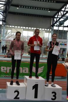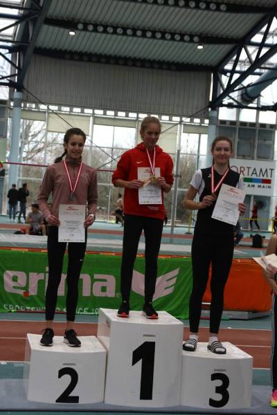 Die noch 15-jährige Johanna Ebert hat ihren Einstieg in die neue Altersklasse U18 erfolgreich bewältigt. Beim Hallensportfest lief sie bereits 2:22,77 Minuten – ein solider Formtest und Antasten an ihre Bestleistung. Bei den Hessenmeisterschaften wurde es jedoch deutlich schneller. Ungeschlagen lief Jana Becker (LG Wettenberg) im Alleingang vorneweg. Dahinter wurde es jedoch spannend. Johanna Ebert läuft Kopf an Kopf mit Kristina Bijelic (TSG Niederhofheim) auf die Zielgerade. Am Ende hat jedoch Kristina die nötigen Körner mehr und Johanna gewinnt in einer neuen Hallenbestzeit von 2:18,92 Minuten die Bronzemedaille. Ihre neue Bestzeit lässt auf noch schnellere Zeiten in der Sommersaison hoffen.