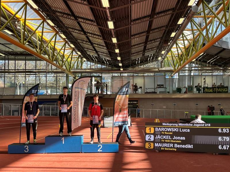 München, 3./4. Februar – Mit neuer persönlicher Bestleistung von 6,93 m im Weitsprung sicherte sich Luca Barowski bei den Süddeutschen U18-Hallenmeisterschaften in der Münchener Werner-von-Linde-Halle seinen ersten größeren Titel. Im selben Wettkampf holte der Zehnkämpfer des TV Rendel zudem auch Bronze über 60m Hürden.