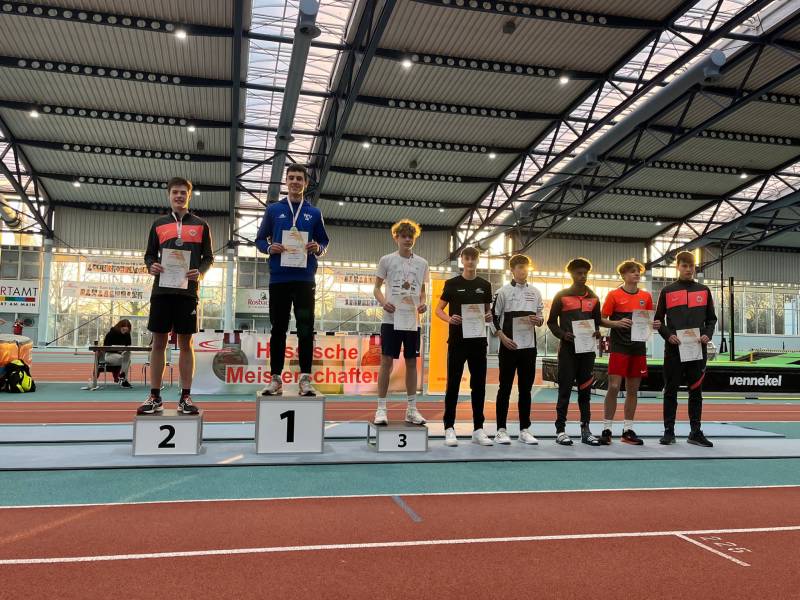 Für die beste Platzierung des TV Rendel bei den HM U18 und Aktive sorgte Mehrkämpfer Luca Barowski, der im Weitsprung der Altersklasse U18 deutliche persönliche Bestleistung von 6,06m erzielte. Im 4. Versuch gelang ihm ein Traumsprung, annähernd 6,20 m – doch ganz knapp übergetreten und damit ungültig. Das Ergebnis hielt bis zum Ende Bestand und der Rendeler verpasst um 2 cm die Bronzemedaille (und auch nur um 4 cm die Silbermedaille). Der 60m-Lauf am Samstag gab einen Vorgeschmack auf die ausgesprochen hohe Leistungsdichte in der Altersklasse mU18: Die acht vorlaufschnellsten Jungen lagen alle in einem nur 11-Hundertstelsekunden-breiten Zeitkorridor zwischen 7,33 s und 7,44 s, Luca Barowski inklusive. Nachdem im Zwischenlauf Luca als Sechstschnellster in neuer persönlicher Bestzeit von 7,42 s nur 3 Hundertstelsekunden von Medaillen-Platz 3 entfernt war und alles möglich schien, fehlte dann im Finallauf jedoch der letzte Punch, sodass Platz 7 in 7,48 s heraussprang – was aber für einen Mehrkämpfer allemal noch eine gute Platzierung in einem Einzel-Finale ist. Am kommenden Wochenende nimmt Luca noch am Kräftemessen eine Ebene höher teil: Bei den Süddeutschen Hallenmeisterschaften in Sindelfingen geht er wieder im 60m-Sprint an den Start.