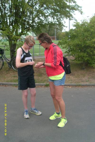 13.08.2015, TVR-Sommerferien-Rumpfteam hält Fahne beim Karbener Stadtlauf hoch