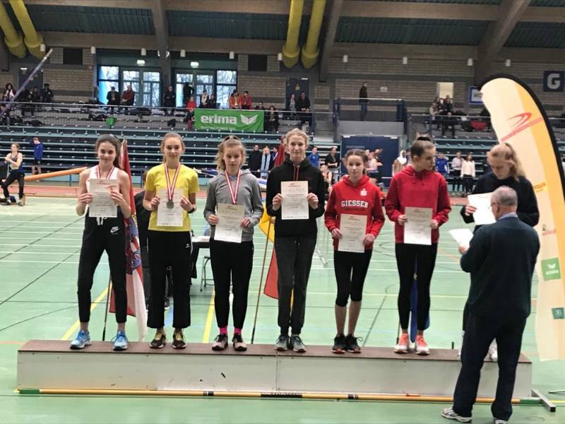 Für die HM-Neulinge Jill Künne und Julius Aston hieß es fürs erste einmal die Luft bei Landeswettkämpfen schnuppern und Erfahrungen sammeln. Zwischen 16 weiteren Teilnehmerinnen im Hochsprungwettkampf stand die großgewachsene Jill. Bei ihrer ersten HM-Teilnahme sprang sie mit 1,45 Metern nah an ihre persönliche Bestleistung heran, und schrammte mit Platz vier knapp am Podest vorbei. Auch für Julius Aston war es die Premiere bei Hessischen Meisterschaften. Im 3000-Meter-Lauf beweist er über die 15 Hallenrunden, dass ein künftiges Lauftalent in ihm schlummert und dass in der kommenden Saison noch mehr drin ist. An diesem Tag reicht es für ihn mit 11:26,40 Minuten für Platz sieben. Der hochgemeldete Luca Wörner ist Bronzemedaillengewinner der Blockmeisterschaften aus der vergangenen Saison. Für ihn waren diese Meisterschaften kein Neuland mehr und er wollte sich in der hessischen Sprintszene beweisen. Vermutlich hat er sich für seinen Lauf etwas mehr erhofft, doch er konnte aufgrund seiner unrunden Vorbereitung, die von einer Krankheitsphase beeinträchtigt wurde, nicht topfit an den Start gehen. Dennoch sprintete er als einer der Jüngsten über 60 Meter mit 8,67 Sekunden auf Platz 16. Florian Kanert konnte im Hochsprung der U20 ebenfalls nicht sein gesamtes Können ausschöpfen. Er ging trotz starker Fersenprobleme an den Start und wurde mit 1,70 Metern und dem neunten Platz in dieser Konkurrenz belohnt. Einmal mehr zeigt Johanna Ebert (U18) ihr Lauftalent und besiegt ihre älteren Mitstreiterinnen über die 800 Meter in 2:21,09 Minuten. „Ein souveräner Lauf mit guter Renneinteilung“, resultierte die Trainerin. Für Johanna bedeutet dieses Gold nach Bronze von letzter Woche schon die zweite hessische Medaille in dieser Hallensaison!