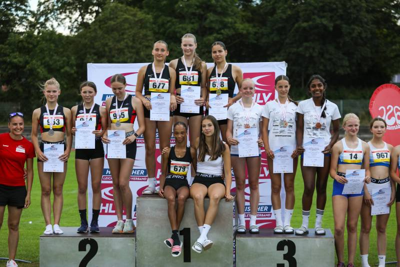 Nr. 5 im Bunde, Charlotte Woltmann musste ihrer bei den Blockmehrkämpfen Mitte Juni zugezogenen Oberschenkelverletzung Tribut zollen und den Wettkampf vorzeitig beenden, trug aber wesentlich zu Platz 1 in der Vierkampfwertung bei. Hier war der TV Rendel der einzige Verein, der überhaupt die geforderte Mindestanzahl von 5 Team-Mitgliedern stellen konnte, die fünf TVR-Athletinnen wurden aber dennoch auch hier als Hessenmeisterinnen geehrt. Nicht unverdient, da die Punktezahl (8.378 Punkte) ebenfalls einen neuen Wetterauer Kreisrekord beschrieb.