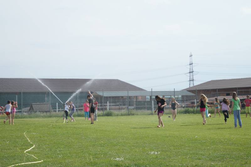 Apropos Erfrischung: Für einen Knalleffekt mehr zufälliger Art sorgten die Rasensprenger, die dem Zweitbundesliga-Rasen der Rendeler Faustballer – und eben auch den Zeltlager-Teilnehmern – an den herrlichen Sonnentagen die benötigte Portion Wasser zukommen ließen.