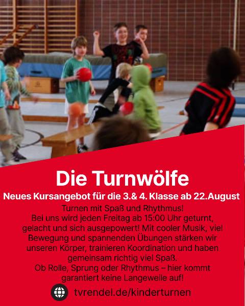 Aufgepasst: Ab dem 22.08. gibt es ein neues Turnangebot für 3. & 4. Klässler beim TV Rendel!