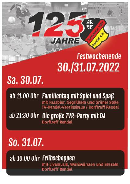 "Rendel unter Sternen" heißt es wieder am 06. und 07. Juli beim diesjährigen Sommerfest des Turnvereins 1897 Rendel e.V.