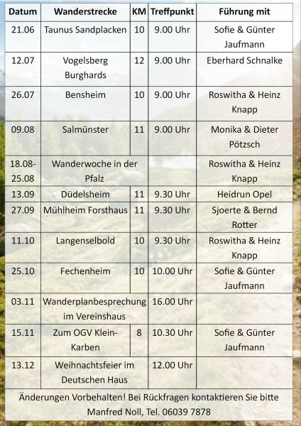 Die Wanderabteilung freut sich immer über neue Mitwanderer bei Nachfragen steht euch Abteilungsleiter Manfred Noll gerne zur Verfügung.